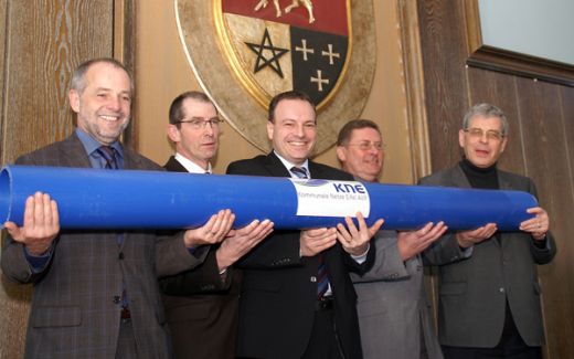 Bitburg-Prüm: (von links) Triers Oberbürgermeister und KNE Verwaltungsrat Klaus Jensen, KNE-Vorstand Wilhelm Heck, Sprecher des Vorstands Arndt Müller, KNE-Vorstand Herbert Reinhard und Landrat und KNE-Verwaltungsratsvorsitzender Roger Gräf.